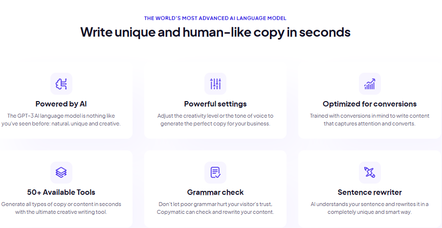 - Contextual Understanding: Copymatic’s algorithms ensure content is contextually relevant and avoids robotic tones.