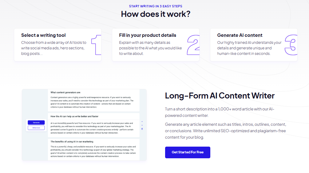Copymatic excels in producing long-form content. You can generate articles and blog posts over 1,000 words effortlessly. With its adaptive model, Copymatic ensures that long-form content is engaging, well-structured, and SEO-optimized.