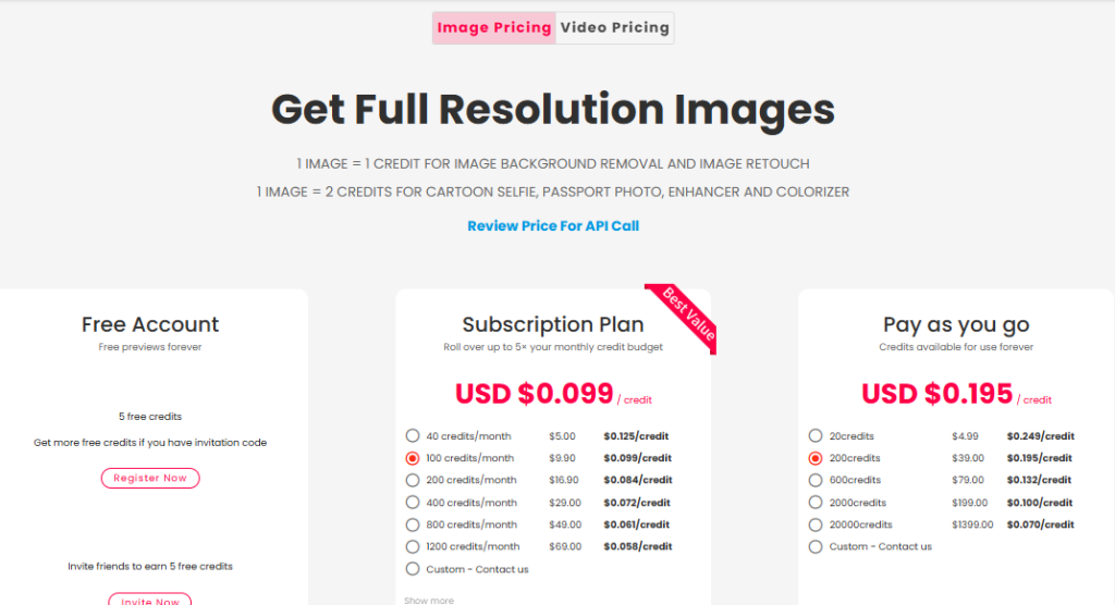 Pay-as-you-go credits start at $0.099, or choose a monthly plan for savings, making it cost-effective for casual and professional users.